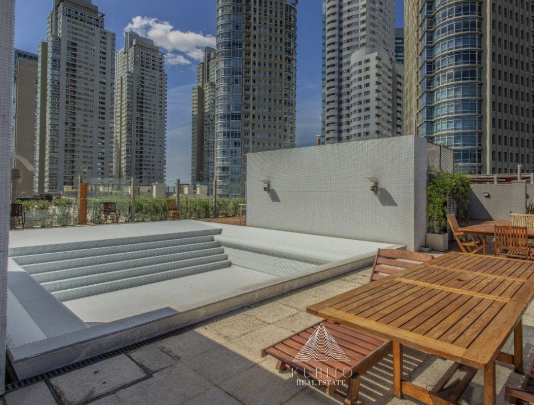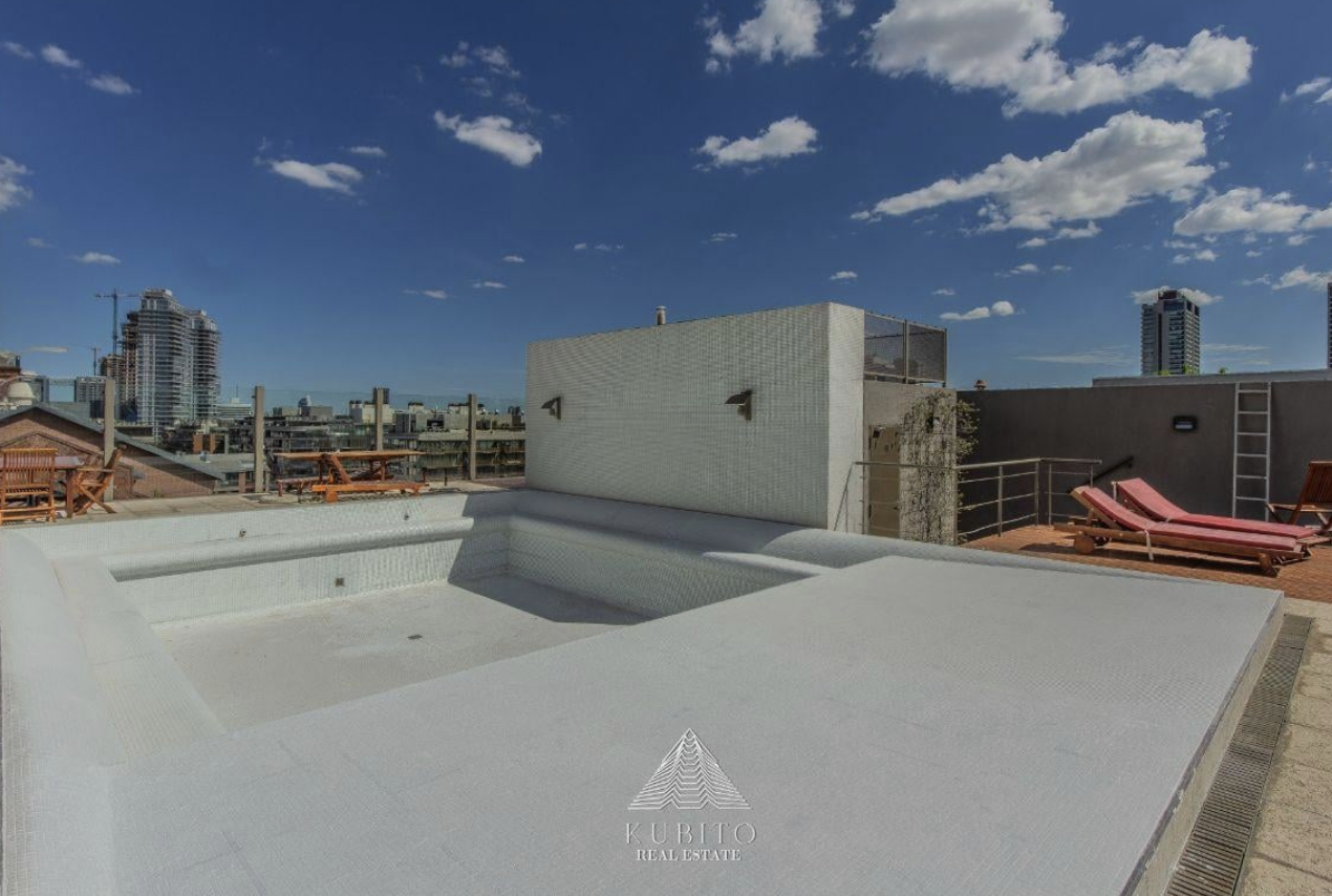 La propiedad está amoblada y equipada con aire acondicionado. El edificio cuenta con ascensor y acceso para personas con movilidad reducida. Entre las amenidades, se destacan la pileta y el solarium, perfectos para disfrutar al aire libre. Además, ofrece vigilancia para mayor seguridad. Cuenta con 1 cochera cubierta.